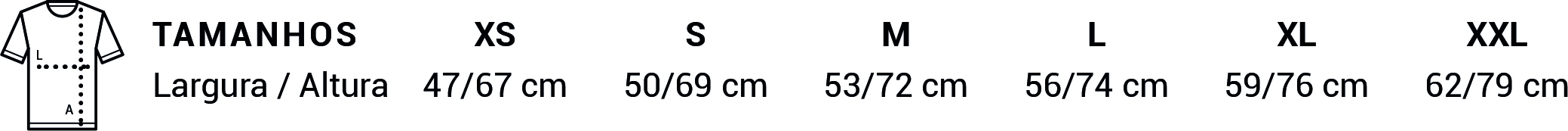 Os tamanhos de t-shirt vão desde o XS até ao XXL.